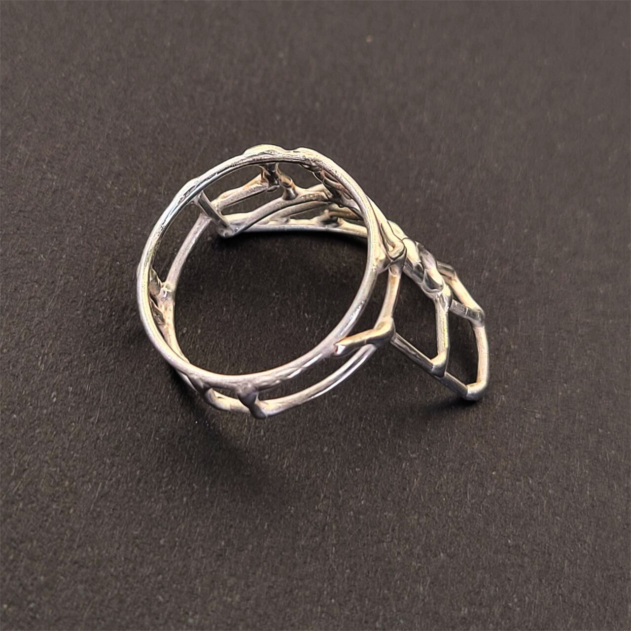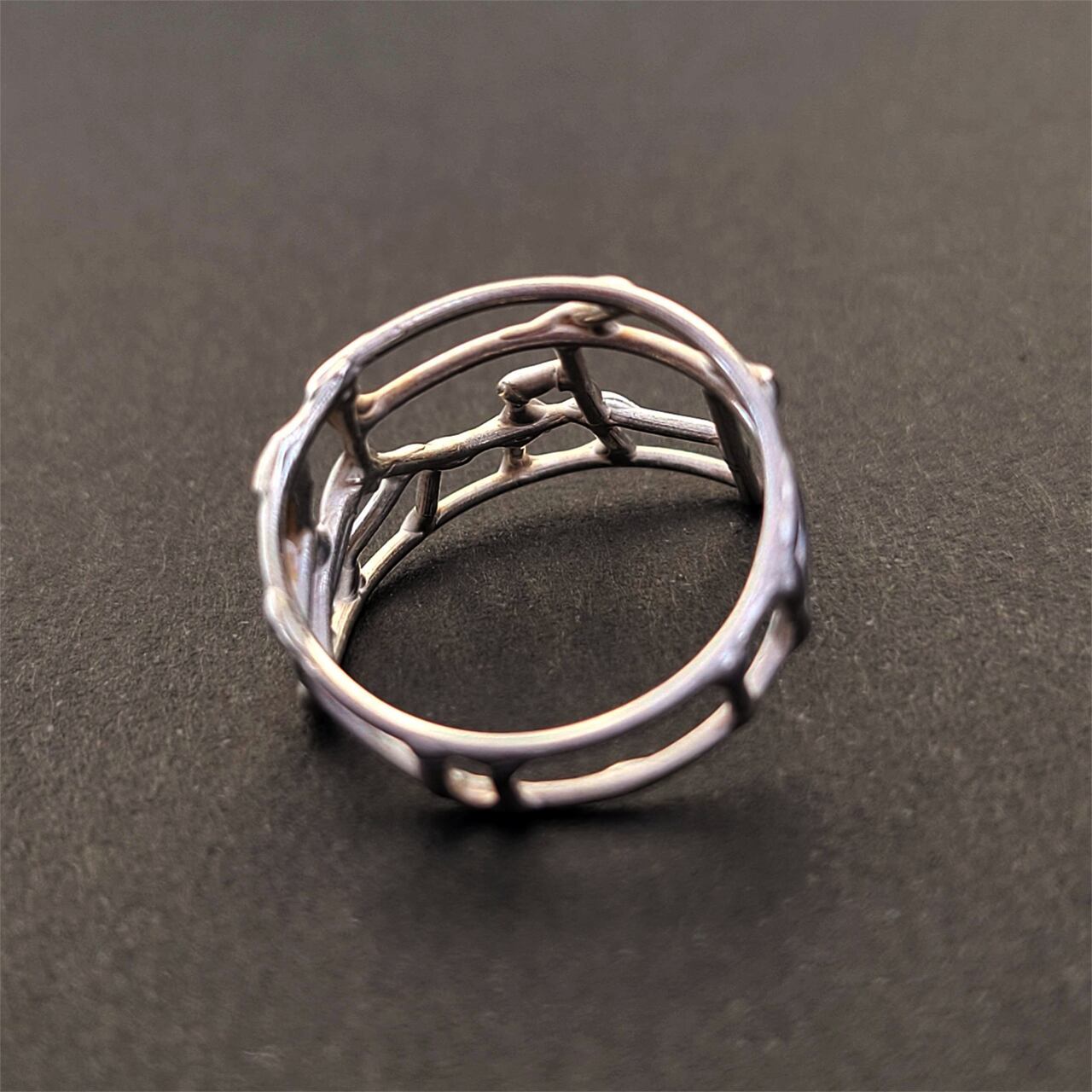 地図のような直線と曲線が走る、14号の銀の指輪です。